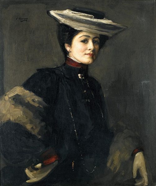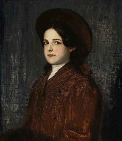 Olga Boznanska painted "Joyful Baśka" using oil on canvas, a medium that lends itself to capturing fleeting moments and subtle emotions. Look closely and you'll notice the brushwork, particularly in the way Boznanska builds up layers of paint to create texture and depth. Her technique isn't about creating a smooth, polished surface, but rather revealing the process of making. The visible brushstrokes capture the texture and drape of the sitter's shawl, and the sheen of her hat. Consider the labor involved, not only in the act of painting but also in the production of the materials themselves. From the harvesting of pigments to the weaving of the canvas, each element represents a chain of human effort and industry. By making these processes visible, Boznanska invites us to consider the social and economic contexts that shape our understanding of art. She reminds us that even the most seemingly effortless works are the result of countless hours of labor and skill.