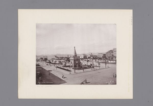 Editor: This is Samuel Bourne’s gelatin-silver print, "Straatgezicht te Kolkata," taken sometime between 1863 and 1867. It feels so meticulously composed, almost staged. What kind of stories do you think this photograph tells? Curator: I see layers of meaning embedded within this seemingly straightforward street scene. The image itself operates as a symbol of British presence in India, doesn't it? Bourne, as a British photographer, is framing a specific view of Kolkata, highlighting the colonial architecture and order. Editor: The presence of horse-drawn carriages and European-style buildings definitely reinforces that idea. How does that relate to its time period? Curator: The mid-19th century was a time of expanding colonial influence and burgeoning photographic technology. This image freezes a moment of that era, reflecting the aspirations and, perhaps unintentionally, the impositions of colonial power. Notice the framing; it is not just a depiction, it's a constructed reality meant to project control and civilization. Editor: So the image, by its very existence, carries this baggage of colonialism? Curator: Precisely. And consider the light, the sharp focus on details...all contribute to this sense of curated order. The street, the buildings, even the people, are presented in a way that emphasizes a particular narrative. The symbols point towards something constructed. Editor: That makes me look at it completely differently. I was so focused on the aesthetic composition before. Curator: Photography from this period often served as a tool for documentation and propaganda. Bourne's work is no exception. By unpacking its visual language, we can reveal some pretty interesting social and cultural contexts. Editor: That's fascinating. I'll never look at a photograph from this period in the same way. Thank you!