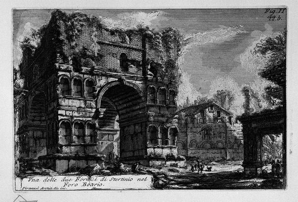 Editor: This etching, titled "January" by Jan van de Velde II, dates to 1618. The frigid air and frozen pond teeming with figures on the ice really transport you to a different time! How do you interpret this scene? Curator: The scene pulses with the energy of shared experience against a stark winter landscape, reflecting humanity’s perpetual need for communion, even amidst hardship. Notice how the artist frames the composition, leading our eyes through a cultural landscape thick with memory. Editor: What do you mean by cultural landscape? Curator: Well, consider the figures: families, workers, aristocrats, all interwoven on the ice. How does this scene reflect larger social and perhaps spiritual structures present in the community during the Baroque period? Editor: It seems to show people from different social classes co-existing in shared leisure, but it's interesting to observe the separation between those using sledges versus those ice-skating. Curator: Exactly. Think about the ways that seasonal change affects shared and personal experience in cycles. Does this symbol inform your understanding of community memory or cultural legacy through art? Editor: The winter activities certainly depict communal resilience and resourcefulness. These seasonal activities act as symbols of life persevering amidst environmental constraints and hardship, reminding us of life's cyclical nature. Curator: Precisely, reflecting enduring symbols across diverse cultures, offering resilience, reflection, and communal memory through visual narratives. A powerful reminder! Editor: It’s amazing how much cultural history is embedded in a seemingly simple winter scene. I see the cyclical symbols of struggle and resilience in a completely different way now.