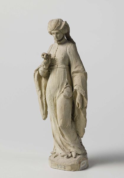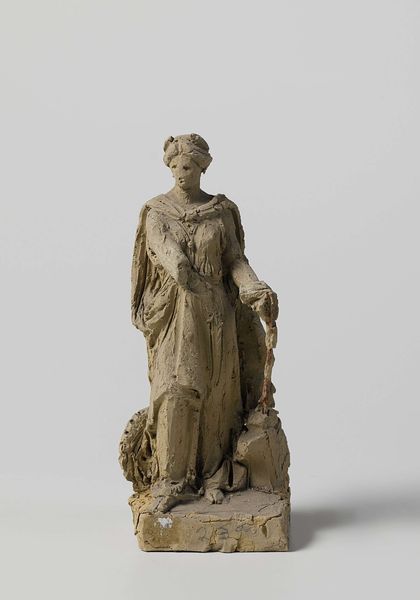 Eugène Lacomblé fashioned this clay sculpture of a noblewoman sometime in the 19th century. The sculpture offers a glimpse into the visual codes of social status in 19th-century Belgium. Lacomblé, who was a Belgian military officer and painter, likely produced this artwork within the context of academic art institutions. These institutions often promoted idealized visions of the past, reinforcing notions of national identity and social hierarchy. The noblewoman's attire and posture signal her elevated position within society, reflecting the conservative values of the time. The incomplete nature of the sculpture, missing its head, invites speculation about its intended meaning and reception. Was it a study piece? A commentary on the fleeting nature of power? Historians can consult archival materials, such as exhibition catalogs, artist biographies, and period reviews, to further contextualize this work within the artistic and social landscape of 19th-century Belgium. Understanding the institutional frameworks and cultural values of the time is essential for interpreting the artwork's significance.