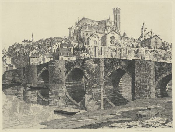 Karl Peter Burnitz captured this view of Toledo using graphite, charcoal, and white heightening. These materials allowed for a remarkable level of detail, evident in the architectural rendering. Burnitz’s choice of materials and techniques invites us to consider the labor involved. The precision of line work in the sketch, the subtle gradations achieved through charcoal, and the careful application of white heightening collectively speak to the skill and time invested in this work. The drawing captures Toledo's grand structures with the use of linear perspective, which was a very popular mode of representation. The use of graphite and charcoal suggests an interest in the raw, earthy qualities of the landscape itself. By attending to the materials and making of this artwork, we gain insight into the labor and social context that shaped its creation. This challenges traditional distinctions between art and craft, highlighting the significance of materials and making in understanding the full meaning of the artwork.