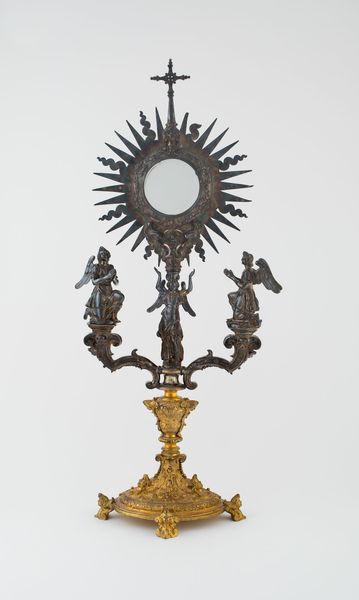 Curator: This intricate object is known as “The Four Evangelists,” crafted by Valerio Belli, also known as Il Vicentino, in the 16th century. It’s currently housed here at the Metropolitan Museum of Art. Editor: My immediate reaction is the sheer density of detail. The contrast between the dark wood and those translucent, almost ethereal figures carved in what appears to be marble… It’s striking. Curator: Indeed. The combination of materials is crucial. The darker wood provides a grounding, almost earthly frame for the spiritually evocative marble carvings. Note how each evangelist is framed within a quatrefoil, a common motif symbolizing the Gospels themselves. Editor: And that central darker figure… it appears almost grotesque compared to the others. What is it? Curator: That’s likely a representation of the Devil or perhaps a more generalized symbol of evil, a contrasting force to the evangelists' message. Visually, its dark tone and more tormented expression emphasizes the virtues embodied in the light colored relief carving, a symbolic contrast for certain. Editor: I find myself wondering about the craftsmanship involved. Look at the way the artist achieved those almost photographic depictions of their faces, carving them to such an extent on hard marble. You know how much effort that demands! What were the conditions like in his workshop? Did he rely on apprentices, dividing the labor? Curator: Those are compelling questions that emphasize the Renaissance workshop as a commercial operation, revealing networks of patronage and workshop organization beyond this stunning object itself. The images carry layered meanings as the marble transmits divine grace. It creates a striking material dichotomy! Editor: I agree. Ultimately, thinking about what this symbolizes leaves me cold until I remember all that went into this cross to exist as such a fascinating commodity. Curator: For me it shows an era of human desire and an artistic mastery devoted to visualizing belief, and a tension within itself! Editor: Very well said!