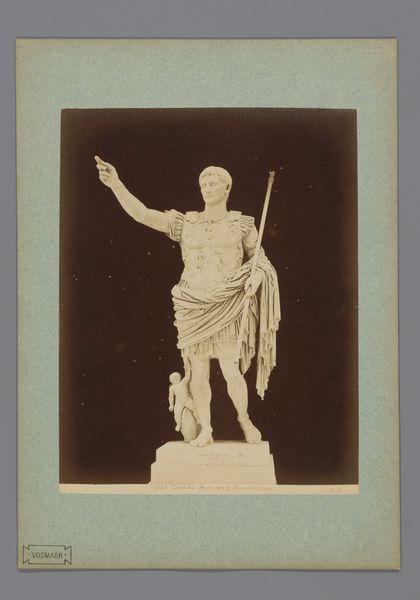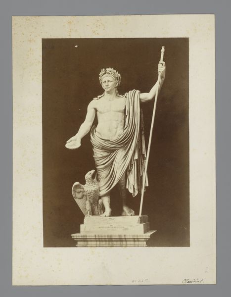 Curator: Immediately, I'm drawn to the classical elegance, almost cold but beautiful in its austerity. It looks like a plaster cast photographed against a stark background. Editor: Yes, let’s dive in. Here we have “Sculptuur van Juno in de Vaticaanse Musea,” a photograph dating roughly from 1860 to 1880, captured by Giorgio Sommer. It's currently held at the Rijksmuseum, offering us a look into the world of 19th-century photography and its engagement with classical sculpture. It's interesting, how photographic reproduction impacted art appreciation. Curator: Absolutely, considering this period we might question Sommer's access, the resources used for this composition. Was this commissioned, or more speculative commercial work, reproducing sculpture for the growing tourist market in Rome? Editor: That's an astute point. This piece likely served the burgeoning tourism industry, offering a portable, reproducible “high art” experience. Think about who had access to the Vatican Museums then. The photograph democratized access in a way, but also participated in a certain visual culture, fetishizing Western classical aesthetics for primarily European consumers. How does its mass production intersect with, or maybe flatten, the legacy and meaning embedded in a singular work of ancient art? Curator: We're seeing a new phase in how artworks disseminate information and become commodity at the same time. Now anyone could purchase Juno. This photographic medium, with its inherent reproducibility, challenges established ideas about originality and artistic aura, it allows broader distribution and reshapes the artistic consumption models. Editor: Exactly! It invites discussions about cultural appropriation, accessibility, and the transformation of artwork into consumer goods and mementos, also highlighting the intersection of art, tourism, and economic systems during this time. Who benefitted the most from this mass consumption of ancient ideals of beauty and power? Curator: It also poses crucial questions about labor—who actually created these images? What was the darkroom staff like, and the sales staff? Did they have a relationship with the artwork displayed in the picture? It forces us to shift our perspective from the artwork itself to the complex web of social, economic, and material conditions that shaped its existence as an object of mass consumption. Editor: Looking at the way its image can still spark discourse about appropriation, authenticity, and how images affect how culture shifts, helps reveal that this work, as an important historical artifact, holds much greater significance now. Curator: Well said, I've shifted my understanding of the picture based on our discussion. Editor: Likewise!