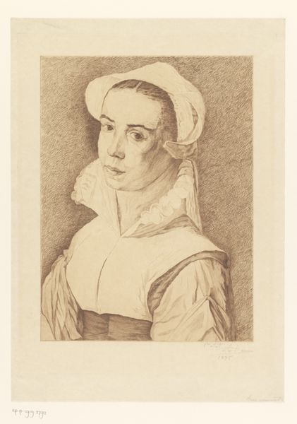 Johannes Janson made this print of a woman’s bust sometime in the 18th century. It's a tiny thing, barely bigger than a postage stamp, and made using a process called etching. With etching, you cover a metal plate with a waxy ground, then scratch your design into it. The plate is then submerged in acid, which bites into the exposed lines. Ink fills these lines, the surface is wiped clean, and the image is transferred to paper under great pressure. The resulting image is characterized by a fine, slightly irregular line. You can see how Janson used this to great effect, creating a sense of depth and texture in the woman’s face and headscarf. Printmaking was an important part of the burgeoning visual culture of the 1700s, allowing images to be reproduced and disseminated widely. It was also a highly skilled craft, requiring mastery of both the chemical and the mechanical processes involved. Looking at this small print, we can appreciate not only Janson’s artistry but also the rich history of printmaking as a medium.