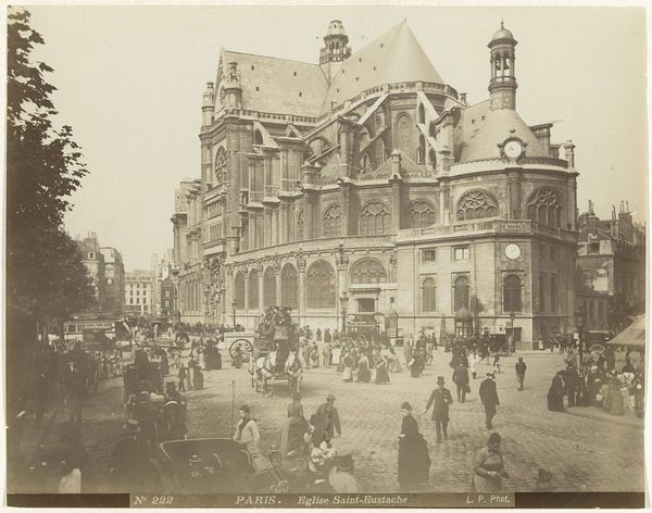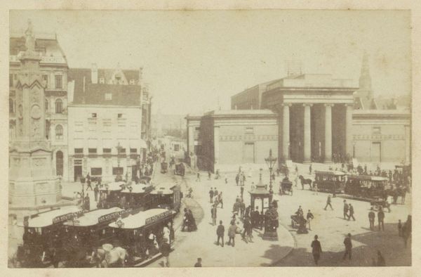 Andries Jager captured this view of the Damrak and the Beurs van Berlage in Amsterdam with photography. The late 19th century was a transformative time, marked by rapid industrialization and urbanization, profoundly impacting social structures and cultural identities. In this photograph, we see a bustling street scene. The Beurs van Berlage, a stock exchange designed by Hendrik Petrus Berlage, dominates the view and embodies the era's focus on commerce and progress. The image captures a snapshot of daily life, featuring a diverse array of people and modes of transportation, from horse-drawn carriages to early trams. Consider how the architecture and urban planning reflect the societal values and power structures of the time. Who were the intended beneficiaries of this progress, and whose stories are often left out of these historical narratives? This photograph serves as a visual record of a society in flux.