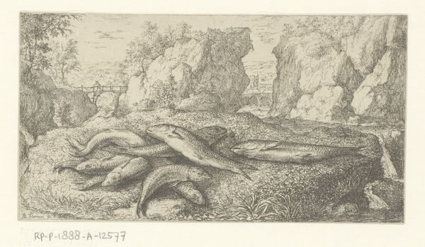 Editor: This is "Crocodile on a Sand-Bank," a gelatin silver print taken in 1857 by Francis Frith. The crocodile dominates the foreground; it feels ancient, almost like a primordial beast, and the scene feels both exotic and strangely still. What do you see in this photograph? Curator: The crocodile, basking on the banks of the Nile, isn’t merely an animal captured by a lens; it becomes a potent symbol, laden with cultural significance. Consider the Victorian era's fascination with Egypt, the "Orient," and the lure of the exotic "Other." The image of the crocodile then becomes intertwined with the Western gaze, of imperial ambition, scientific curiosity, and a bit of colonial swagger. What emotional baggage, do you think, travels with this particular symbol? Editor: So the photograph isn't just about capturing the animal itself, but the way the Victorians viewed it, or even wanted to view it? Curator: Precisely. Crocodiles, often associated with the Egyptian god Sobek, represented power, protection, and even fertility. They occupied a sacred, revered position within ancient Egyptian society, but by Frith’s time, with the advent of Egyptology and burgeoning colonial interests, that sacred position was arguably…transformed. Editor: Transformed into something to be documented and, in a way, possessed? Curator: Precisely. Now, look at how Frith has composed the image – the framing, the light. The crocodile is static, monumental. Consider the implied narrative. Is it a trophy from an explorer’s adventure? Or an object of natural scientific scrutiny? Or simply picturesque wildlife in a faraway place? Editor: I never would have thought there could be so many layers to a picture of a crocodile! Curator: Indeed. A simple image of wildlife becomes an eloquent representation of culture, history, and human perception. Editor: I'll certainly look at photographs differently now.