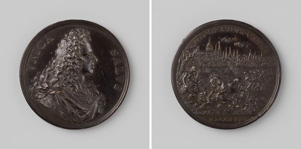 This silver medal, commemorating the twenty-fifth anniversary of the Sincere society, was crafted in 1742 by Martin Holtzhey. The circular form, a concentrated field for symbolic expression, immediately draws our attention to the interplay between text and image, a common semiotic strategy in commemorative art. On one side, allegorical figures flank a pedestal overflowing with fruit, representing abundance and prosperity. On the other side, a tree rises from what appears to be a cityscape, encapsulated by a wreath. This juxtaposition creates a binary between nature and civilization, tradition and progress. The Latin inscriptions, forming a perimeter around the central images, act as linguistic anchors, guiding our interpretation of the visual elements. Holtzhey's piece functions as a microcosm of 18th-century values, neatly packaged into a portable, metallic form. As we contemplate this medal, we are invited to decode its symbols, recognizing that its meaning is not fixed but rather an ongoing process of interpretation, shaped by cultural context and individual perspective.
