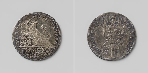 Curator: Well, hello! We're standing before a rather interesting piece. It’s a silver medal created around 1675 by an anonymous artist. The medal commemorates the Victory over the Swedes at Fehrbellin, honoring Frederick William, Elector of Brandenburg. Editor: It looks like an artifact brimming with power. Even at this diminutive scale, there’s an undeniable aura of victory, though rendered in solemn metallic hues. What really grabs my attention is the combination of portraiture and allegorical symbolism – the portrait looking every inch the imperator. Curator: Indeed. Medals like these were common ways to propagate the image of rulers and commemorate important historical events, effectively cementing their legacy. In this case, the victory at Fehrbellin was particularly significant for Frederick William and the rise of Brandenburg-Prussia. Think of it as 17th century political marketing. Editor: Looking closer at the imagery on the reverse, we have an allegorical figure. Winged, seated on a trophy of arms… a figure of Victory, surely? And isn't she crushing military gear, signaling dominance? The crowned shield also adds to the visual language, further solidifying notions of authority and the Divine Right of Kings, that sort of thing? Curator: Exactly! The artist cleverly combined portraiture with symbolic representations of power, all aimed at projecting an image of strength and legitimate rule during a time of war. Also, consider that these medals were not just about historical record. They functioned as gifts, distributed among courtiers, allies, and even enemies, as declarations of intent. Editor: The symbolic language definitely worked, because without knowing the specific battle you mentioned at the start, I still get a feeling of confident victory. Perhaps the way the light glints off the metal lends a particular radiance to it. It truly feels as if the medal enshrines a powerful and victorious moment. Curator: Well said. In understanding the cultural context and the intended audience, one gains a deeper appreciation of the power of objects such as these to shape historical narratives. Editor: Precisely! And in teasing out the symbolism employed here, the careful arrangement of images, it illuminates so much about that specific period. Curator: Indeed. An important battle cast in silver; how is that for durable power? Editor: It makes you think differently about small objects in a collection! Thank you.