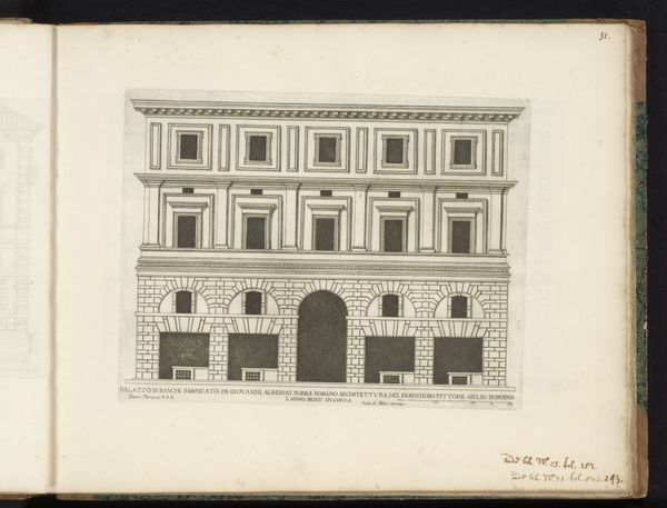 Giovanni Battista Falda made this print of the Palazzo Muti in Rome around 1688, using etching and engraving on paper. The artistry lies in Falda’s mastery of the burin, a tool used to carve lines into a metal plate. Look closely, and you’ll see how the density and direction of these etched lines create the illusion of light and shadow, lending depth to the façade. This wasn't just documentation; it was a form of architectural promotion. Prints like these circulated among wealthy patrons, showcasing the grandeur and sophistication they could aspire to in their own building projects. Consider the labor involved, from quarrying the stone for the palazzo itself, to Falda's skilled hand meticulously rendering every detail. This print not only captures the aesthetic of the building, but also tells a story of craftsmanship, aspiration, and the economics of taste in 17th-century Rome.