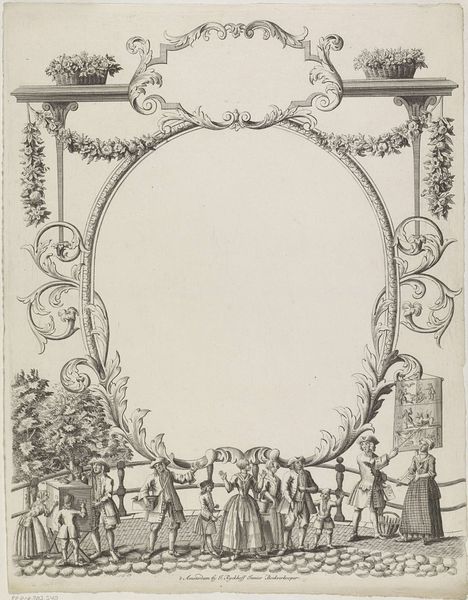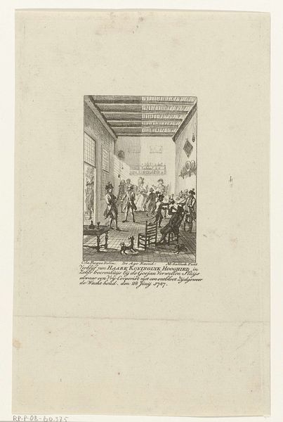 Curator: This ink and engraving on paper by Mathias de Sallieth from 1786, titled "Willem V toegesproken in de vergadering van de Staten van Zeeland, 1786" captures a significant moment. The Rijksmuseum holds it now, offering us a peek into late 18th century Dutch politics. What are your initial impressions? Editor: Austere. My first reaction is to the starkness of the image. The fine lines, almost delicate, belie the serious subject matter depicted. The arrangement of figures is regimented but feels somehow detached. Curator: Yes, it reflects the prevailing Neoclassical style—emphasizing order and clarity, fitting for an official representation of a Stadtholder addressing the States of Zeeland. Consider the choice of engraving: a reproducible medium, ideal for disseminating this image widely, shaping public opinion about the House of Orange. Editor: It's fascinating how the artist used such simple materials – ink and paper – to convey such political weight. What strikes me is how this work enters the visual rhetoric around leadership. We see these individuals framed not merely by walls but by explicit images of naval power and mercantile success. These drawings within the drawing, what do they suggest? Curator: A very deliberate construct. The imagery underscores the naval power wielded by Zeeland and, by extension, Willem V, essential for trade and colonial ambitions. This points to a carefully orchestrated visual campaign to project authority amid growing political unrest at the time. Note, too, that the material itself is an agent of power—printmaking facilitated an explosion in the reach of visual rhetoric, changing consumption. Editor: So, beyond being a depiction, the work itself becomes an actor in the very political theater it portrays. Considering its context – growing unrest, shifting power dynamics – how was something like this actually received? Was it persuasive? Did it simply document an event, or was it designed to mold popular sentiment? Curator: Exactly! Understanding reception requires considering socio-political currents—patriot factions challenging the Orangists, demanding democratic reforms. An image like this could serve as Orangist propaganda, but its impact was undoubtedly complex. Perhaps reaffirming faith amongst supporters while stirring discontent among opponents, contributing, potentially, to revolutionary sentiment in its own right. Editor: It's an important reminder that art is never created nor viewed in a vacuum, the materials and display are intertwined. This makes me see past the official narrative; what begins as a record instead reveals fractures in political discourse that speak to much broader societal change. Curator: Agreed. Thinking about the material realities of its production and circulation—the networks it moved through, the hands that reproduced and consumed it—enables a deeper, more critical understanding of its place and purpose within the turbulent landscape of the late 18th century.