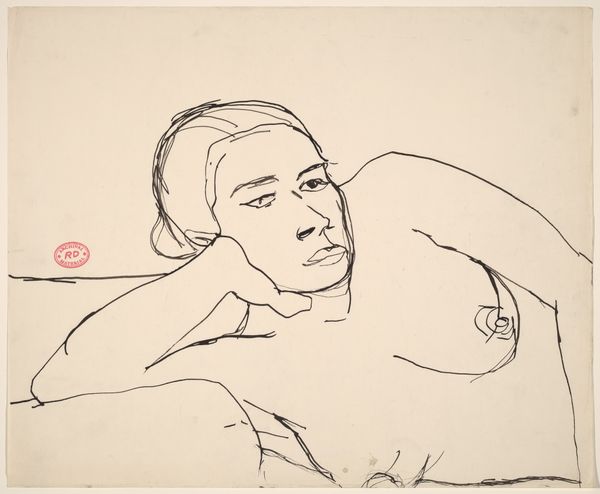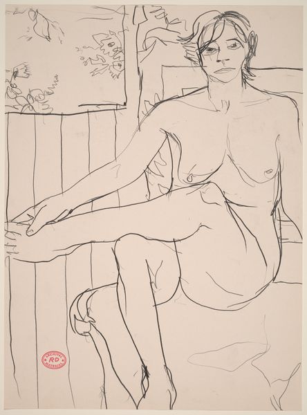 Editor: So here we have Richard Diebenkorn's "Untitled [female nude leaning back and grasping ankle]," likely made sometime between 1955 and 1967. It's a pencil drawing, very simple and direct. I find the pose so interesting; she seems so casual and unposed, you know? What catches your eye? Curator: It’s true, there’s an intimacy here, like we’re glimpsing a private moment. The way Diebenkorn uses the line – almost tentatively, but with surprising confidence – reminds me of the way a jazz musician might improvise a melody, finding the form as they go. Notice how the background is barely suggested. Do you feel that emptiness affects your experience? Editor: Definitely. It makes the figure the entire focus, like she exists only in this moment, on this page. But it's not idealized. It feels...real. Curator: Precisely! There’s no romanticising of the nude, none of that classical striving for perfection. He seems more interested in capturing a certain presence. Almost a kind of quiet defiance in her gaze? He leaves the viewer plenty of room to bring their own impressions into the space. What do you imagine she's thinking? Editor: Hmm... Maybe just enjoying the feeling of the sun on her skin? Or maybe she's completely lost in thought, oblivious to anyone watching. It's captivating. Curator: It is, isn’t it? The beauty, as always, lives somewhere in that elusive, incomplete narrative. A conversation with yourself as much as the artist. Editor: I never really considered it as a self portrait until now. It seems the most interesting artworks have more questions than answers. Curator: Agreed! That's exactly the spark that keeps me engaged. It also underscores the importance of seeing beyond the obvious and embracing the inherent ambiguity of art.