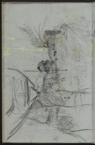 Curator: Here we have a pencil drawing entitled "Voor een hooikar gespannen paard", or "Horse Drawn to a Hay Cart" by Cornelis Saftleven, created around 1666. Editor: My first thought is, wow, that horse looks exhausted. And the composition is unusual, we are down low near the animal almost on the ground. Curator: Absolutely. Saftleven was a master of capturing the everyday life of the Dutch Golden Age. And that’s conveyed, for sure, in the raw depiction of labor we see here. Think about the societal function of the artist - to represent these key modes of production. Editor: It does place this rural existence within a very specific social hierarchy. Look at how Saftleven uses simple pencil strokes to differentiate between the hay cart, the horse, and what looks like some people walking down the path in the background. The scale tells us a lot about who is doing the hard work. Curator: Yes, and the materials tell a story, too. The humble pencil elevates the mundane to art, prompting questions about the labor and the rural economy. Think about the cost of paper and pencils in this time period: this wasn't some random sketch done by a random person! Editor: Good point! We also need to consider the impact that these kinds of drawings had on art education and taste. Genre paintings like these were not just artistic statements but tools for social instruction. Curator: The Dutch Golden Age saw a booming art market serving the middle class. So this sketch could have been a study for a larger work, meant to appeal to that rising market eager for scenes of recognizable everyday life. Editor: I still keep returning to that poor horse. There is a profound statement being made here about working animals that touches something universal and eternal. Curator: Seeing this, analyzing how Saftleven has rendered such quotidian aspects through art opens many channels for considering life during the Dutch Golden age. Editor: Yes, from production to class to art and society— it's amazing what such a humble drawing can tell us.