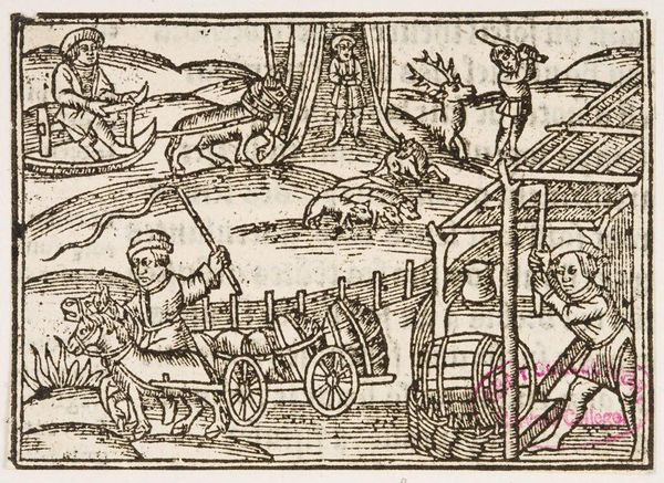 Editor: This is "Illustration XCI" by an anonymous artist, found at the Harvard Art Museums. The scene depicts people transporting a large tree. What strikes me is the stark contrast in the illustration, and I wonder about the process of creating something like this. What do you see in this piece? Curator: I'm fascinated by the depiction of labor here. Consider the tools and techniques used to produce this print. Woodcutting itself demanded specific skills, shaping our understanding of material culture in its time. What kind of consumption was this illustration intended for? Editor: It is interesting to think about the skill required to carve these tiny lines, and the labor represented in the print itself. I hadn't considered that. Curator: Right, and the materials themselves—wood, ink, paper—were commodities. These aspects offer insights into the social and economic contexts that shaped artistic creation.