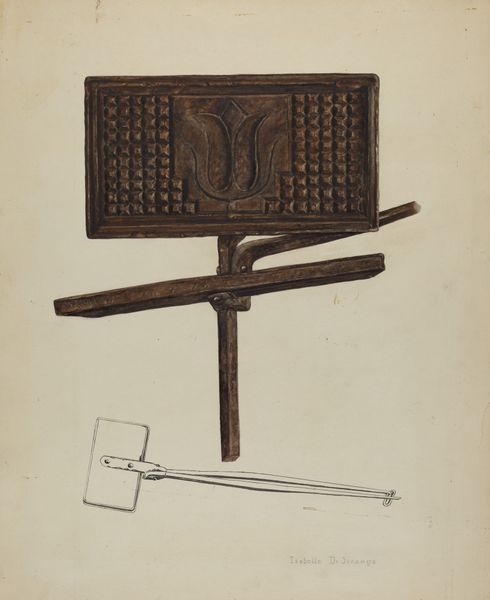 This 'Waffle Iron' rendering was made by Ralph Russell in the late 19th or early 20th century, using graphite and watercolor on paper. Russell, known for his detailed depictions of tools and machinery, invites us to consider the waffle iron not merely as a kitchen utensil, but as a cultural artifact. In an era of rapid industrialization, the waffle iron symbolizes both domesticity and the burgeoning consumer culture. The ornate design, typical of the period, reflects a society where even everyday objects were imbued with aesthetic value. Yet, this object also speaks to the gendered division of labor, the cultural expectation that women would undertake domestic duties. The smell of waffles evokes nostalgia, comforting memories of home, family, and tradition. In rendering this object with such care, Russell prompts a dialogue between art, industry, and domestic life. A simple waffle iron becomes a lens through which we can examine the social fabric of a bygone era, and perhaps, reflect on our own relationship with the objects that shape our lives.