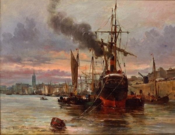 Ioannis Altamouras made this oil on canvas painting, titled "Port of Copenhagen." Notice how Altamouras meticulously applies layers of pigment to capture the textures of the water and the ships. The brushstrokes create a sense of movement, mirroring the dynamism of a bustling port city, and of the Industrial Revolution. Now, consider the material's inherent qualities: the canvas provides a stable ground, while the oil paint offers richness and depth. The skillful blending of colors evokes a sense of atmosphere, hinting at the social and cultural significance of maritime trade. The ships, depicted with careful attention to detail, speak to the era's advancements in shipbuilding and navigation, reflecting broader historical narratives of exploration and commerce. In understanding Altamouras's "Port of Copenhagen," it's essential to appreciate the artist's engagement with his materials and the socio-economic context that shaped his artistic vision, blurring the lines between fine art and craft.