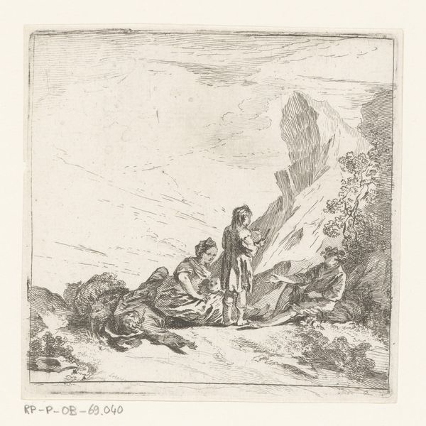Johannes Tavenraat made this forest landscape with figure, using pen in gray on paper, sometime in the 19th century. The solitary figure, set against a dark, expressive landscape, evokes a sense of romanticism that was popular at the time. Tavenraat, working in a period of significant social and political change, may have been drawn to the forest as a place of refuge or contemplation. It suggests an emotional depth, a connection to nature that transcends mere representation. The forest, often seen as a space of mystery and the unknown, reflects a deeper, more personal experience. In this small drawing we feel the immensity of nature and the smallness of man.