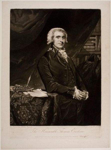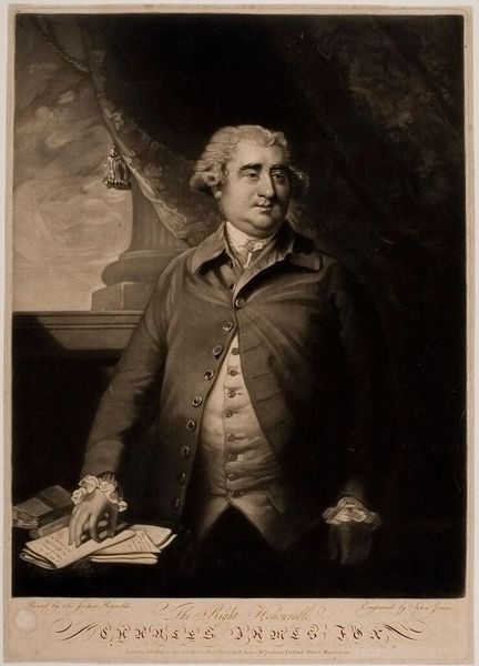 Curator: This print by John Hall depicts Richard Brinsley Sheridan. He appears poised, caught in a moment of thoughtful contemplation. Editor: The precision of the lines gives it a somewhat formal air, doesn't it? It speaks to the means of its production, the engraver's careful work, and the social status it aims to project. Curator: Indeed. Sheridan, the playwright and politician, is very deliberately presented. One wonders about the role of portraiture in constructing identity and power. Editor: And about the labor involved in this type of image production. Who were the engravers replicating these images, and what were their relationships to the portrayed subject? Curator: Considering Sheridan's progressive politics, the print perhaps served to broadcast his image and ideals, engaging with the visual culture of the era to shape public perception. Editor: It prompts us to examine the material conditions of artistic production and its impact on the dissemination of political ideas and identities. Curator: A fitting consideration for a man who deftly used both the written word and political stage to advance his cause. Editor: And a reminder that even seemingly straightforward portraits can reveal complex networks of power and production.
