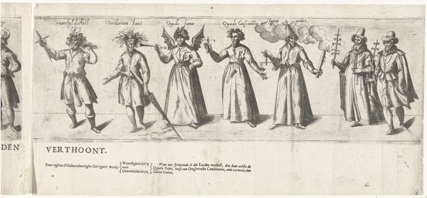 This anonymous engraving from 1607 depicts a procession by the chamber of rhetoric, ‘Den Aeckerboom’ from Vlaardingen. Rhetoric chambers were theatrical societies popular in the Low Countries during the 15th and 16th centuries. They staged plays, poetry readings, and debates, often with a moral or didactic purpose. This print, part of a larger series, likely commemorates a specific performance or event by the Vlaardingen chamber. Each figure represents an allegorical character, identified by the text above. The image offers a fascinating glimpse into the social and cultural life of the Dutch Republic. The rhetoric chambers played an important public role in shaping civic identity, political discourse, and religious beliefs. To understand such imagery, historians consult archival documents such as membership lists, play scripts, and financial records. These records provide valuable insights into the social composition, artistic practices, and ideological commitments of these chambers. In this way, we can understand better the public role of art in early modern Europe.