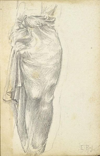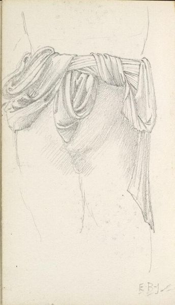 Editor: This is Edward Burne-Jones's "Drapery Study," probably from the late 19th century. It's a delicate pencil drawing, focused on the fall of fabric around a torso. What stands out to you about this piece? Curator: I'm struck by the intense focus on classical forms within the Pre-Raphaelite movement. Consider how Burne-Jones uses drapery—not just to depict clothing, but to convey idealized beauty and perhaps even moral virtue, echoing a romanticized vision of the past. Does the choice of such a study tell us anything about artistic training at the time? Editor: That's fascinating! It positions the piece within the broader academic tradition, using classical forms to convey societal values. Curator: Precisely. And think about the institutional support for such training. The Royal Academy encouraged this approach, solidifying its place within the art world. Editor: I see. So it’s not just a drawing, but a reflection of the art world’s values. Curator: Exactly. It makes you consider the power structures that elevated certain artistic styles and subjects.