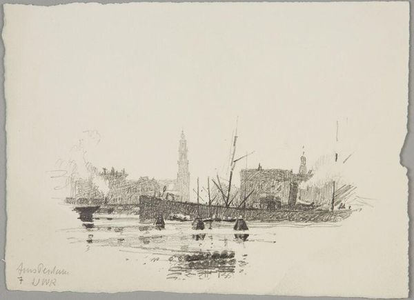 Editor: Here we have James McBey's "Venice," a watercolor from 1925. It has this wonderfully ethereal quality, almost dreamlike with its soft washes of color. What strikes me most is the way the architecture seems to almost dissolve into the sky. How do you interpret this work? Curator: Indeed. From a formalist perspective, consider the strategic deployment of watercolor. Observe how McBey exploits its inherent transparency to create a layering effect. Note also how this layering alludes to depth through superimposition, and how the limited palette of blues, grays, and creams reinforces a unified, almost monochromatic scheme. Do you observe any contrasting textures? Editor: Yes, I see that the brushstrokes depicting the water are much looser and more fluid than those used for the buildings, which are more defined, if still quite soft. It’s like he's capturing the dynamism of the water against the static nature of the city. Curator: Precisely. McBey leverages the medium's versatility to create that very opposition. The materiality of watercolor becomes central, communicating movement, depth, and stillness all in one composition. Ask yourself this: how does the negative space contribute to the overall balance? Editor: I think the open sky and the expanse of water actually emphasize the density of the boats and buildings in the center. They act almost as framing devices, drawing your eye to the focal point. Curator: An astute observation. Notice how these formal choices influence your reading of "Venice." The piece isn't merely a representation; it’s a study in pictorial organization. By manipulating the formal elements, McBey effectively communicates… stillness. Editor: This was great. I realize now that focusing on the formal elements opens up new perspectives. I was mostly impressed by my feelings! Curator: Agreed! By deconstructing and analyzing those choices we get a greater appreciation for the intentionality of the artwork.