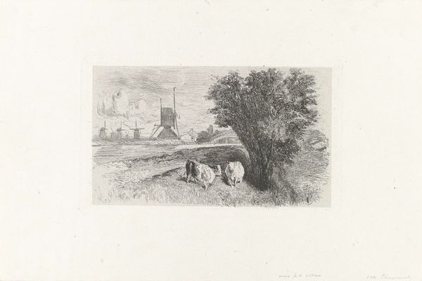 Curator: This is "Landschap met toren en twee resten van pijlers," or "Landscape with Tower and Two Remains of Pillars" by Canaletto, created sometime between 1707 and 1768. It seems to be a pen and ink drawing, perhaps a preparatory sketch. Editor: The atmosphere is striking. Even with the precision, the use of thin, sharp lines creates an overall sense of transience. It feels like a fleeting memory of a place. Curator: It does have a dreamlike quality. Canaletto, though celebrated for his meticulous cityscapes, also made these more intimate, less formal drawings. These give insight to his thoughts beyond representing Venice as a theatrical set. He was depicting Venice and places surrounding Venice for English clientele investing in the Grand Tour. Editor: The crumbling pillars certainly contribute to the dream state. Their placement evokes the remnants of classical grandeur and power. Pillars always denote structure and legacy but rendered incomplete they suggest decline, maybe the fading relevance of traditional authority. Curator: Absolutely. This drawing could be a comment on the shifting social and political landscapes of the time. The decaying structures, juxtaposed with the tower, hint at changing power dynamics and the inevitable passage of time. Canaletto himself was navigating an art market influenced by patronage and the desires of his clients. Editor: Notice the figure in the foreground; alone and seemingly dwarfed by the surrounding landscape. To me, it’s a nod to the everyday human experience existing amidst grand historical narratives, reminding us that life persists even as empires crumble. This feels almost melancholy. Curator: Interesting that you highlight the melancholy because art historians debate on the overall implications of Canaletto's imagery for England versus Venice at the time. I find this drawing very pragmatic given that its function as record to entice patrons looking for the exotic while back at home. Editor: Even a pragmatic approach can still invoke certain symbols! Thank you, your input changed my perspective on it quite a bit. Curator: Likewise. Analyzing the social underpinnings and the iconic power gives depth and richness to a piece like this.