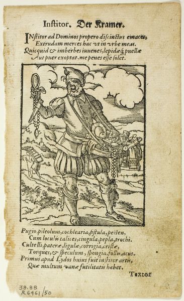 Editor: Here we have a woodcut illustration from Sebastian Brandt's *Navis Stultifera*, printed in 1497. It's a stark, almost unsettling image of a jester leading an ox. What do you make of it? Curator: It’s compelling to consider this image as a product of its specific historical moment, printed in Basle by Bergmann van Olpe. The very materiality of the woodcut, the labor involved in its production, speaks volumes. How was this book disseminated? Who had access to it? The means of production themselves informed its reception. Editor: That's interesting. So, you’re saying we should look at the woodcut itself as an object, not just an image? Curator: Precisely. The image's dissemination – a relatively reproducible medium – becomes a key factor. The accessibility of printed text, contrasted with hand-scribed works, created entirely new relationships between image, text and audience. Editor: So, the choice of a woodcut tells us something about who Brandt wanted to reach? Curator: Absolutely. It’s about understanding the social context of production. How did the economics of printmaking affect the imagery itself? This is not just about artistry but also the socio-economic conditions in which this object was made. We need to think critically about the interplay between labor, materials, and the cultural message it conveys. The text is as much of an image as the... well, image. Editor: I hadn’t thought of it that way. Focusing on the process of creation really opens up the interpretation. Curator: Indeed. By understanding the mechanics of production, we understand the constraints and opportunities afforded to the artist, and thus a deeper understanding of the piece itself.