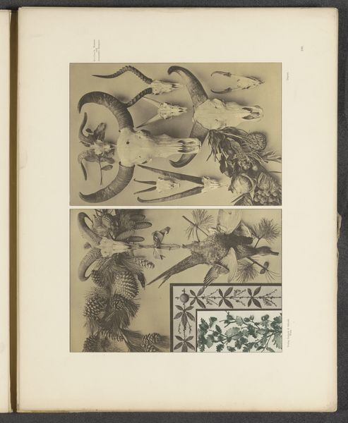 Here we see a collection of decorative groups with musical instruments and palm leaves, made by an anonymous artist in an unknown medium. The piece presents clusters of musical instruments coupled with palm leaves within framed rectangular panels. The instruments suggest a rich history of musical tradition and cultural expression, whereas the palm leaves may allude to themes of peace, victory, or tropical landscapes. Consider how the absence of a known artist and the lack of specific dating invite a broader exploration of cultural heritage. Who were the people creating and using these instruments? What stories did their music tell? The arrangement of instruments alongside palm leaves might hint at a convergence of different cultures. They may convey aspects of cultural exchange, or even comment on power dynamics, for example the West’s appropriation of exotic cultures. As you reflect on this, think about how anonymity shapes our understanding—or lack thereof—of history. What voices and stories might we be missing?