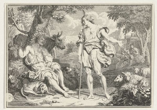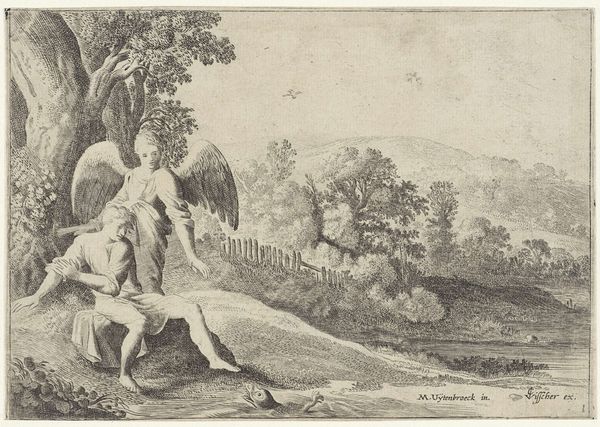 Pietro Monaco made this print, "An angel appearing to Hagar", sometime in the 18th century, using etching and engraving on laid paper. The image shows the angel pointing Hagar towards a well to save her son Ishmael, but for me, the power of this image is in the lines. Look closely, and you'll see how this Old Master print was made with the skilled hand of an artisan and a sharp eye for capturing light and shadow. The linear quality of the etching and engraving is apparent, as the density of lines creates darker areas and conveys a sense of depth and volume. The contrast in the monochromatic artwork is striking and is achieved through intricate cross-hatching and stippling techniques. The artist's hand is evident in every stroke, a reminder of the labor involved in the printmaking process. The materiality of the paper provides a receptive surface for the ink, enhancing the tactile quality of the print. It is a great example of how so-called fine art depended on highly specialized craft skills.