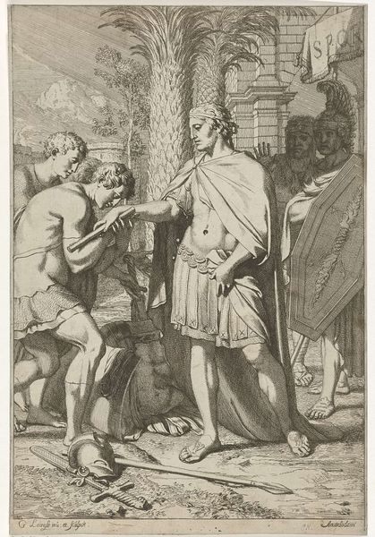 This print by Salvator Rosa depicts Belisarius as an old man with a stick leaning against a column. It speaks to questions of justice, power, and the fickle nature of fame. Made in Italy in the mid-17th century, the image draws on the story of Belisarius, a successful general of the Byzantine Empire, who was said to have been unjustly accused of treason by Emperor Justinian and reduced to poverty, even blinded. Rosa's choice of this subject reflects a broader cultural interest in themes of virtue, corruption, and the abuse of power. The broken column, the fallen hero, and the expressions of pity on the faces of onlookers all work together to create a scene of pathos and moral commentary. To fully understand this artwork, we can turn to historical sources, literary accounts, and biographical information about the artist, as well as studies of patronage and collecting during this period. The meaning of art is contingent on this social and institutional context.