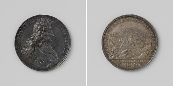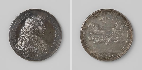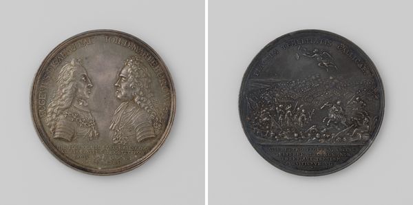 This medal commemorating the Battle of Malplaquet was crafted by John Croker, an engraver working in the late 17th and early 18th centuries. Note the winged Victory, floating ethereally above the battlefield, a motif stretching back to ancient Greece and Rome. She embodies triumph, but also carries echoes of mortality and the ephemerality of glory. Consider how this allegorical figure resonates with similar images across time. We might recall Nike of Samothrace, or even Renaissance depictions of angels. What threads connect these symbols across centuries? Victory's presence here—amidst a scene of conflict— speaks to a deep psychological need to find meaning in chaos. This is a visual language of power and control, yet also a poignant reminder of the human cost of victory. The motif resurfaces, evolves, and takes on new meanings in different historical contexts.