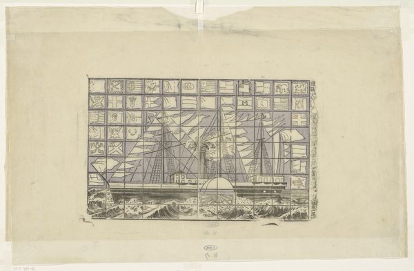 This drawing by Du Bois represents a miniature boat, likely created sometime between 1775 and 1875. It depicts what appears to be a detailed representation of a steamboat. The artwork is made with ink or graphite on paper, focusing on linework and tonal values to describe the boat’s form. The choice of this medium is interesting because of its simplicity and the need for a skilled hand to create such a precise image. The drawing may have served as a design proposal, a record, or simply a study of an object related to industry and transport. The steamboat itself has social and economic significance, reflecting the rise of industrial transportation and its impact on society. Steamboats revolutionized travel and trade, thus influencing economic growth and labor practices. This drawing could hint at the growing importance of industry and technology in everyday life. Focusing on the materials and the subject matter reveals how deeply intertwined art, industry, and social change can be.