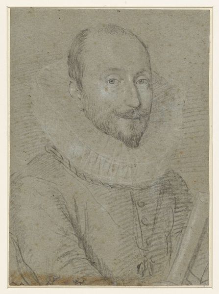 Hendrick Goltzius created this delicate portrait of a military commander using pen and grey ink on paper. Notice how the intricate details of the commander's attire and the softness of his facial features immediately capture your attention. The meticulous application of line and shading constructs not only the commander’s likeness but also the texture of his garments. Goltzius employs a complex semiotic system here. The ruff collar, the patterned doublet, and the positioning of the figure each signify status and authority, reflecting the cultural codes of the time. The choice of a monochromatic palette serves to highlight form and texture, creating a visual hierarchy where the commander's presence is both imposing and intimate. Observe the controlled, yet expressive lines that articulate the face and clothing. This portrait exists not just as an aesthetic object, but as a cultural artifact. It is a testament to the enduring power of art to capture, question, and renegotiate ideas of identity and authority.