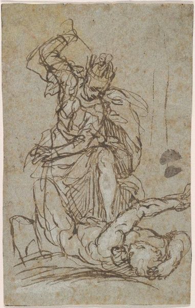 Editor: This pencil sketch, "Virgin and Child in the Clouds" by Bartolomeo Salvestrini, dating from 1599 to 1633, feels so ethereal and preliminary. What symbols do you see at play in this image? Curator: The overriding symbol, of course, is that of the Madonna and Child – an archetypal image resonating across millennia and cultures. It’s about divine motherhood, nurture, and hope. But Salvestrini couches it in floating forms; note how they're not tethered to earth. What does that evoke for you? Editor: Freedom, maybe? A sort of heavenly detachment? Curator: Precisely. But look closer. This Virgin isn't simply holding the child. It's an allegory: The sceptre speaks to the Virgin as ruler of Heaven, while the orb beneath hints at her universal reach. The cloud’s density creates a feeling of ascending weight. Salvestrini masterfully condenses centuries of Marian symbolism into a single image, referencing traditions but hinting at future perspectives on the familiar. Editor: So it’s about distilling powerful ideas through instantly recognizable forms, ones charged with accumulated cultural meaning. Curator: Exactly! Artists build on symbols, sometimes amplifying, sometimes subverting. This image is far more intricate and ambitious than what appears at first. How different cultural perspectives understand this work could reveal compelling stories about memory. Editor: That's really fascinating! I always looked at religious art as static, but I’m starting to see how dynamic and rich it can be. Curator: Every artwork is a living archive of ideas. It needs to be looked at as cultural heritage!