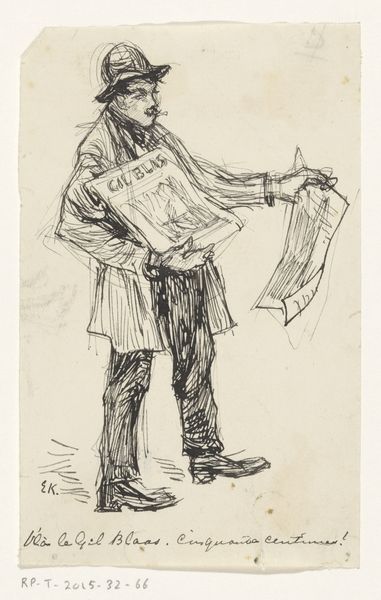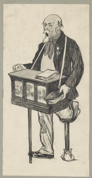 Editor: This etching by James Sayers from 1784 is titled "The Atlas of the Landed Interest." The figure's hunched posture and the weight he carries immediately evoke a sense of burden. What’s your take on the societal commentary being made here? Curator: This print needs to be read within the context of late 18th-century British politics, where visual satire became a powerful tool. Consider how the “landed interest”—the aristocracy and gentry who owned significant property—wielded immense political power. Sayers critiques this system. Who do you think the hunched figure represents? Editor: Possibly someone in Parliament? Or perhaps someone representing the general populace, carrying the weight of the wealthy landowners? Curator: Exactly. Note how "Landed Interest" is packaged like a heavy, cumbersome block being carried by this gaunt figure. The inscription makes reference to ‘Brother’, so how does it relate to the public’s perception of political alliances? Editor: It appears to mock these familial ties, where decisions favored those of the same blood. Curator: It's more than just mockery, the image suggests this network actively oppresses and exhausts those it should be serving. Does knowing this shift your understanding? Editor: It does, I thought it was simply commenting on power, but its more critical when knowing what underpinned it. It challenges the notion of ‘nobility’ with that twisted posture. Thanks for the political background. Curator: Indeed, political prints used satire to democratize public opinion, so what appeared as simple "illustrations", can now be understood for their intended effects.