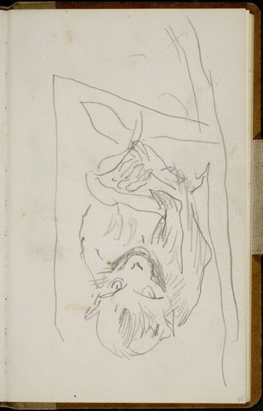 Curator: Immediately, I’m drawn to the intimacy of this quick sketch. There’s a sense of immediacy, as if we're looking over Breitner's shoulder while he captures these figures. Editor: Indeed. What we see here is “Kind en een mannenhoofd in profiel” by George Hendrik Breitner, likely executed between 1880 and 1882. It's currently housed at the Rijksmuseum. The medium appears to be pencil on paper. Curator: The rough, almost unfinished quality is striking. Look at the way the lines are laid down – very economical. The child’s form is suggested with just a few strokes, yet it conveys a sense of movement and vitality. And the adult's head… what a contrast in tone. Editor: It's tempting to see this drawing as a record of the labor of observation, really. Pencil drawings like these were crucial for developing compositions, for understanding light, volume, the relation between forms. This paper breathes utility, serving as a stepping stone within a broader studio practice. Curator: I find that materiality intriguing. Consider the formal interplay: the positioning of the figures creates a dynamic composition, a diagonal thrust that prevents the image from becoming static. The tension between the figures is palpable, almost like a study in contrasting human expressions. Editor: The kind of paper used here also matters; did Breitner make this drawing using inexpensive mass-produced material, or was this paper custom made in an artisanal studio? How would his social status influence what type of drawing equipment he'd choose and why? These are the questions which come to mind. Curator: It allows us a peek into Breitner's thought process, an intimate glimpse beyond a mere likeness of forms to the structural logic behind the visual elements presented, no? It highlights his mastery. Editor: Ultimately, this study shows how process, even more than subject, can inform the aura of art. We leave contemplating the material conditions that made it all possible. Curator: Yes, it is fascinating how those fleeting strokes can leave such a lasting visual impact.