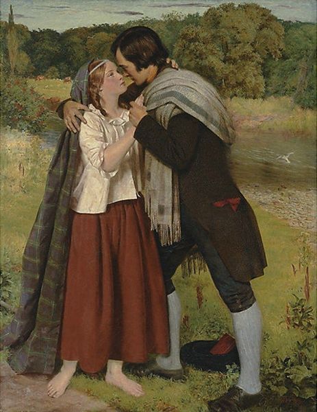 Editor: So, this is Boris Kustodiev's "Poetry," painted in 1902 with oil on canvas. It has a charmingly old-fashioned, almost theatrical feel to it, and the figures look as if they are posed for a costume drama. I wonder, how do you see this piece in the context of art history? Curator: The painting evokes the romantic ideals prevalent at the turn of the century, drawing from historical dress and pastoral settings to construct a vision of refined leisure and artistic inspiration. One aspect I find significant is how Kustodiev uses figures dressed in period costumes. Who is being represented here, and for whom? It speaks to a nostalgic desire for a seemingly simpler, more aesthetically driven past. Editor: That makes me consider who would commission or admire such a work. Perhaps a rising merchant class eager to connect with established, aristocratic symbols? Curator: Exactly. This portrayal taps into the desire for cultural legitimacy. Look at the artificiality of the backdrop. What does the staged naturalism suggest about the relationship between art, nature, and social aspiration at the time? Consider the politics of representing beauty, leisure and refinement as markers of status. Editor: The slightly unreal quality does make me question how "authentic" the vision really is. The bright lighting and clear water of the lake add an optimistic veneer. Curator: Indeed. And optimism sells! Do you feel that Kustodiev challenges or reinforces these class distinctions through his artistry? Editor: I see now. It feels more like an endorsement of the aspirations of the bourgeoisie rather than a critique. This romanticized imagery served a very specific social function. Thanks! Curator: It’s interesting to consider art as an active participant in constructing social narratives.