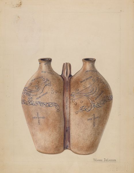 John Tarantino made this watercolour of a Miniature Flask, at an unknown date. It's such a simple image, but like a lot of simple things, it's really quite profound. What I see here are two nearly identical views of the same vessel rendered with a muted palette. The colours are restrained, earthy, drawing attention to the subtle variations in tone and texture. It is in these minor details, the slight imperfections in the glaze, that Tarantino captures the handmade quality of the original object. Consider the way the light falls across the surface of the flask, creating soft shadows that define its form. It's as if Tarantino is inviting us to contemplate not just the object itself, but also the act of seeing. Reminds me a little bit of Morandi actually, in its close observation of everyday forms. Both artists invite us to slow down, to look closer, and to find beauty in the simplest of things.