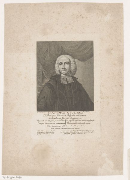 This is Govert Kitsen’s monochrome print, “Portret van Gisbertus Bonnet”. Its visual structure is defined by a play of contrasting tones and textures, with Bonnet’s figure encased within an oval frame. The formal composition uses contrasting shades to give shape to Bonnet’s features and attire. Notice how Kitsen employs light and shadow, particularly in Bonnet’s wig and robe, to convey volume and texture. The sharp lines defining his profile contrast with the softer gradations of the background, emphasizing the sitter's presence. The formal arrangement, with the portrait set against a blank space, reflects a structured approach to representation, typical of the period. Below, the addition of text introduces a semiotic layer. This challenges the artwork's purely aesthetic function. The script transforms the image into a signifier of status, profession and moral qualities attributed to Bonnet. The structure of the portrait, combined with the textual elements, engages with cultural codes and power structures, inviting us to interpret beyond the surface.