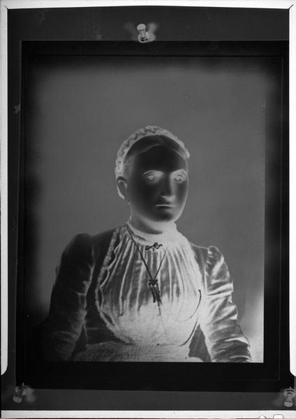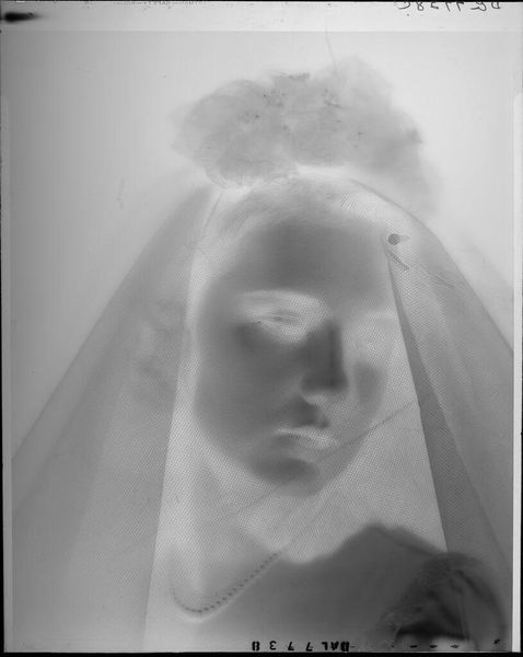Editor: This striking photograph by Harris & Ewing features a woman in a tilted hat, fur, and veil. The composition is compelling. What do you see in this piece, from a formalist perspective? Curator: The image's power lies in its stark contrasts. The interplay of textures—the rigid geometry of the hat, the soft veil, and the plush fur—creates a visual dialogue. The woman's gaze is direct, engaging the viewer in a space defined by light and shadow. Do you agree? Editor: Yes, definitely. The hat’s shape is so severe, contrasting with the softness surrounding it. I appreciate your analysis. Curator: And that contrast is key. Through formal analysis, we understand the artist's choices shape our perception. Editor: I see how close examination reveals the underlying structure and meaning.
