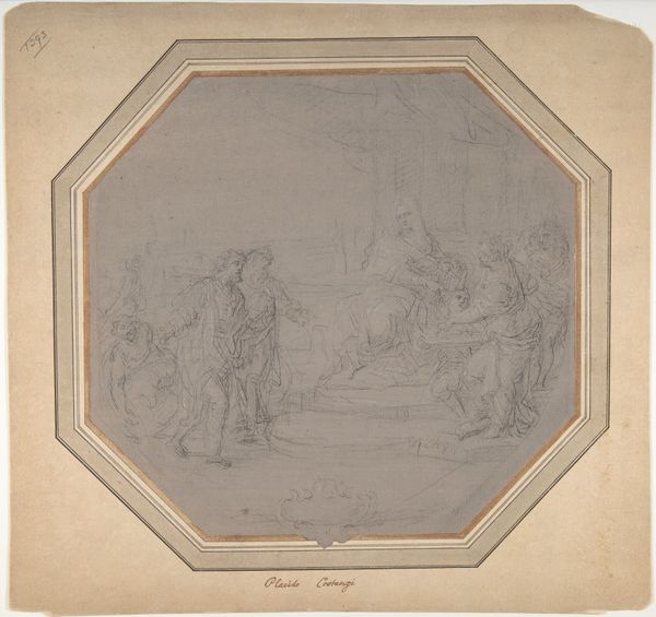 Editor: This pencil drawing from sometime between 1580 and 1585 by Bernardino Poccetti is titled "Saint Dominic and the Heretical Women". The composition feels unsettling, especially the women kneeling before the saint. How do you interpret this work? Curator: This piece really brings to light the power dynamics inherent in religious history, doesn’t it? I see a staging of power, where Saint Dominic represents the dominating forces of the Church, compelling us to question, through a modern intersectional lens, the cost of religious imposition on marginalized groups, specifically women. What do you notice about their gestures? Editor: They look submissive, almost coerced. Curator: Precisely! Poccetti’s sketch captures a pivotal moment in religious history ripe with potential for misinterpretation and abuse. Considering the period, the Italian Renaissance, how much autonomy do you think these women had? Do you feel that Poccetti is illustrating the dangers that are likely intrinsic in such interactions, even unintentionally? Editor: It makes you wonder what their real story was. If this sketch accurately portrays this encounter, the saint isn’t a hero here. It makes me think of how narratives are twisted to keep the powerful in control. Curator: Exactly, and that’s where art history becomes profoundly relevant. Poccetti’s drawing isn't just an illustration of an event; it's a lens through which we can analyze the construction of power and its repercussions across gender and religious divides. Editor: I never thought about it that way before. Now I'm more skeptical of how the "official" stories are always told. Curator: It is my belief that this sketch, intentionally or unintentionally, showcases the importance of understanding historical narratives through multiple, challenging perspectives, revealing the subtleties that may speak the loudest about historical events.