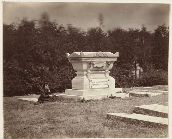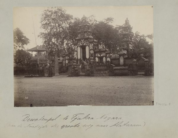 This photograph shows Chinese tombs near Semarang, captured by Woodbury & Page. The sepia tone evokes a sense of history, while the composition, carefully arranged, draws us into a space where culture and nature converge. The eye is led by a structured arrangement of carved stone figures, dividing the foreground and midground into horizontal registers. These figures, frozen in solemn repose, mark a transition toward the central tomb structure. Here, a balustrade adorned with relief carvings, provides a structured boundary. The very act of photographing these tombs, a Western gaze capturing Eastern burial grounds, initiates a semiotic exchange. The photograph serves not only as a document but also as a statement about cultural observation and interpretation. The subdued tonality further emphasizes the solemnity of the site. Ultimately, the photograph invites us to contemplate the complex interplay between representation, cultural heritage, and our own perspectives.