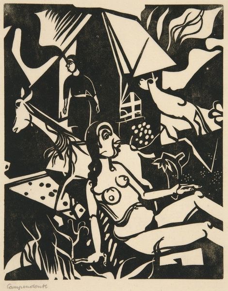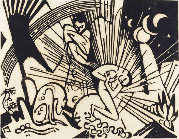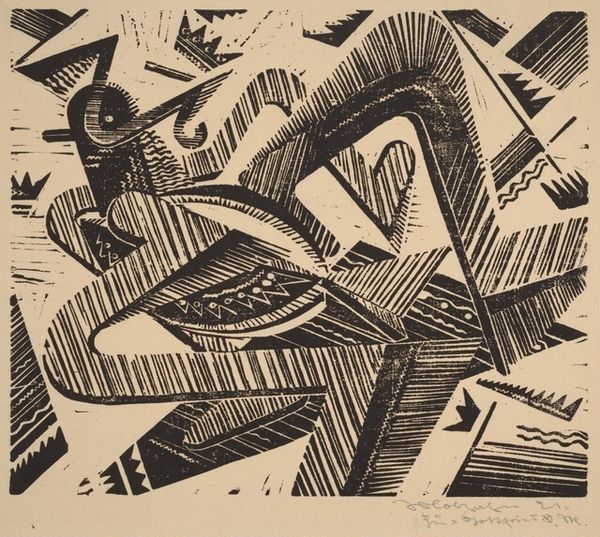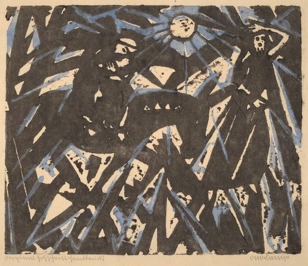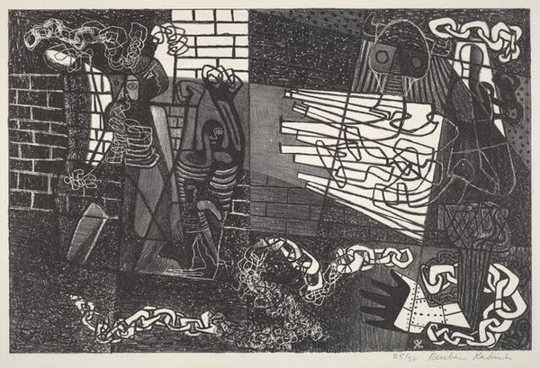 This woodcut titled "Oorlogsgeweld" was made by an anonymous artist using bold contrasts of black and white. It’s like they were thinking, "How can I make the starkest statement possible?" The artist really leaned into the physical act of carving, where each gouge into the wood counts. Check out the frenzy of marks that make up the bushes in the foreground, or the jagged edges of the building in the top left corner engulfed in what seems to be smoke. It’s rough, urgent, and so full of energy. I see echoes of Käthe Kollwitz in the way this artist uses the woodcut medium to convey raw emotion and social commentary. There’s an embrace of ambiguity here, a sense that meaning is not fixed but emerges from the interplay of form, content, and viewer experience.
