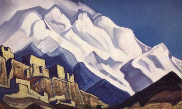 Nicholas Roerich made this painting of a Monastery in Himalayas with what looks like tempera, sometime in the first half of the 20th century. What strikes me most is how the whole picture plane is reduced to blue - mountains in blue, skies in blue - but it's the texture that gives the picture its magic. The paint is matte and dry-looking, creating a chalky effect. This gives the picture a tactile quality, like a fresco, or even dry pigment rubbed directly onto the canvas. Look at the mountain on the left. See the vertical striations? It’s as if Roerich applied the pigment with long, repetitive strokes of a dry brush. These subtle marks create a sense of depth and volume, while also reminding us of the physical act of painting. I wonder if the symbolic landscapes of someone like Marsden Hartley might have been on Roerich's mind when making this? In the end, art is all about interpretation, so maybe it's just blue mountains, who knows!