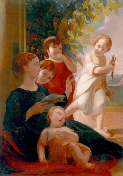 Lambert Sachs painted "The Herbert Children" sometime in the mid-19th century. The children, rendered with meticulous detail, offer a window into the social values of their time. Painted in America, the portrait conveys a sense of middle-class aspiration. The children, dressed in finery, are arranged as symbols of family continuity and social status. The girl's doll and the baby's rattle suggest a gentle domesticity, while the landscape in the background implies a family estate, suggesting a lineage of wealth. Sachs captures not just likenesses but also the prevailing ideals of childhood and family. The painting’s setting, likely a studio, highlights the role institutions play in shaping artistic production. Artists were dependent on commissions, thus the patron's expectations heavily influenced the final work. To fully grasp the portrait’s meaning, we might consult period literature, conduct genealogical research, or look at domestic advice manuals, each of which would help reveal the cultural values that framed Sachs’s artistic choices.