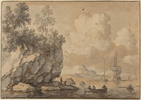 Erik Pauelsen created this ink and wash drawing, "View of Naesse castle with Lake Furesø from the West" sometime in the late 18th century. It offers us a glimpse into the cultural values of the Danish elite during that era. The scene depicts a tranquil landscape, complete with figures engaged in leisure activities, a castle, and placid waters. This idealized vision of nature was typical of the period, reflecting a desire for order and harmony. The work was produced during a time of significant social change, as Denmark, like much of Europe, was grappling with Enlightenment ideals and the beginnings of industrialization. To fully understand the nuances of this work, art historians might consult estate inventories or conduct research into the cultural values of the Danish elite during this period. Such resources help us to interpret art as deeply embedded in specific social and institutional contexts.