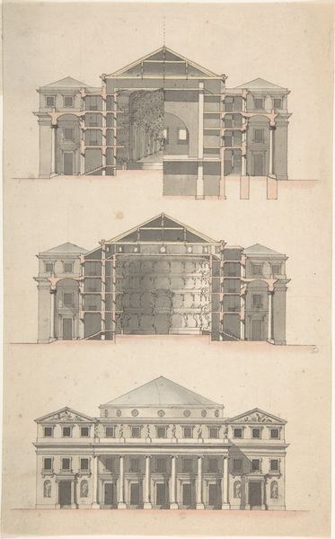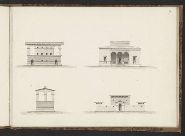Willem Springer Jr. made this drawing of two villa fronts with pencil and gray ink, likely in the Netherlands. It is not dated, but Springer was active throughout the 19th century. These sober facades, rendered with precise lines, evoke the architectural styles of ancient Greece and Rome. This neoclassical style reflected a broader societal interest in reason and order during the Enlightenment and beyond. The Dutch, with their powerful trading empire, looked to these historical examples of powerful republics. But this isn't just a revival of old forms; it’s an adaptation. These villas speak to the aspirations of a rising merchant class, eager to display their wealth and refinement through their homes, and it also echoes the institutional history of the artist, whose training as an architect shaped his artistic hand. Historical societies and archives are essential resources for understanding the cultural and social forces that shaped Springer's architectural drawings, because the meaning of art is contingent on its social and institutional context.