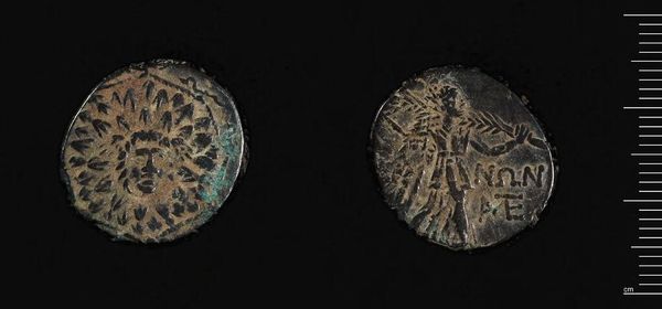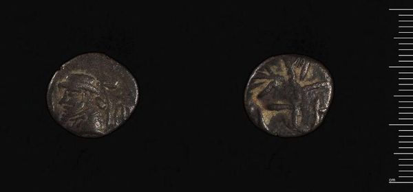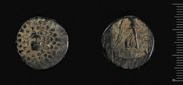 Curator: Here we have a coin of Mithradates VI, from Amisos in Pontos. It weighs about 7.41 grams. Editor: It has a raw, almost brutal quality to it. The visible wear and tear speak volumes. Curator: Absolutely. Consider the metal composition, its minting process; each coin was a product of very specific labor conditions and resource extraction tied to Mithradates' rule. Editor: And each one was a tool of propaganda, right? Circulating with the faces of power, constantly reminding people of the regime’s authority. Curator: Precisely. The imagery wasn't just aesthetic; it was about control of narrative, of projecting an image of strength. Editor: Looking at the coin's current condition, it seems almost rebellious. It whispers stories of resistance against power through its very survival. Curator: A lasting symbol, indeed, of ancient economics and political power. Editor: It gives a sobering glimpse into past lives and struggles.