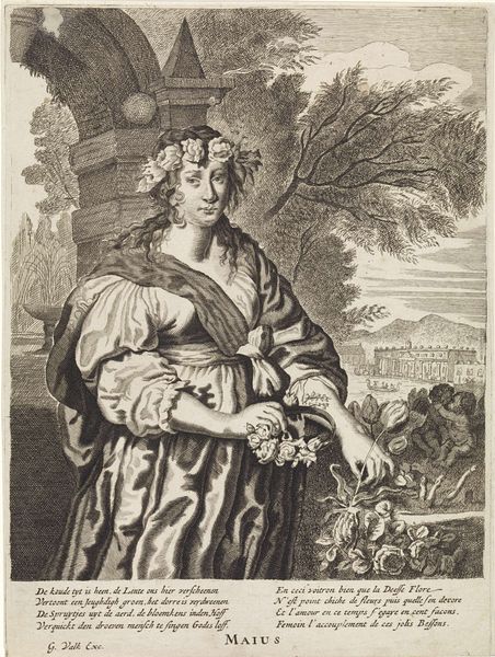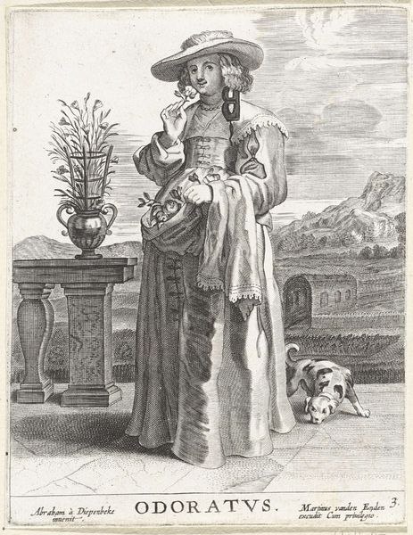 This print, titled "Tactus", comes to us from an anonymous hand. It is made using the intaglio process, where lines are etched into a metal plate, filled with ink, and then pressed onto paper. The graphic arts in the early modern period were often deeply entwined with commerce. Prints like this were relatively inexpensive to produce, and served as a crucial means of disseminating images and ideas to a broad audience. The intricate detail achieved through etching speaks to the skilled labour involved, even as the process allowed for mass production. Note how the figure, representing the sense of touch, delicately holds a bird, contrasting with the rough texture of her dress. Prints occupied a curious position – both precious objects and disposable commodities. They remind us that all art is made within a specific economic context, blurring the lines between craft, industry, and artistic expression.
