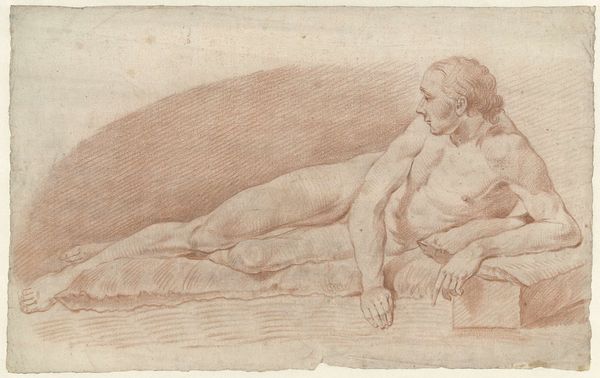 Editor: This drawing, "Sleeping Diana Spied upon by a Satyr" by Leonaert Bramer, is so subtle. It's just a pencil sketch, but the scene feels... charged. What do you see in this piece? Curator: I see a visual representation of the power dynamics inherent in voyeurism, particularly when gender and mythology are involved. Diana, a powerful goddess, is rendered vulnerable in sleep, while the satyr embodies a traditionally masculine, predatory gaze. What does it mean to see this scene through Bramer’s eyes, and more importantly, through our own, centuries later? Editor: That’s a powerful point. It makes you think about who is allowed to look, and at what cost. Curator: Exactly. It also prompts us to question the normalization of such scenes in art history and their contribution to the objectification of women. Editor: I never thought of it that way, but it completely shifts my perspective on the drawing. Curator: These kinds of images offer a look into the cultural values and power structures of their time, and challenge us to interrogate those that persist today.