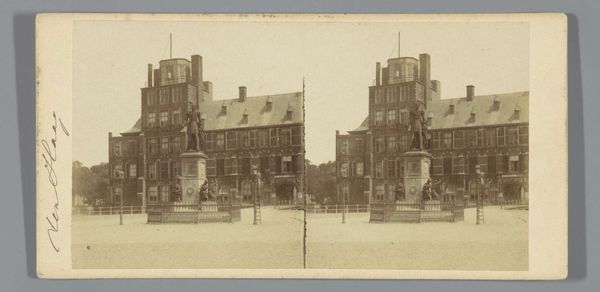 Editor: So, here we have an undated photograph titled "Washington Monument and State Capitol," presented as an albumen print on a stereocard. I find the repetition intriguing, almost like a mass-produced souvenir. What strikes you about it? Curator: The key for me is the process itself. These stereocards, mass-produced through photographic reproduction, were commodities. How does that impact the way we see the monument, not as a singular artistic achievement, but as something consumable, part of a broader economy of image making? Think about the labor involved in capturing and replicating this scene. Editor: That's a fascinating point. So it shifts the focus from the monument’s intended symbolism to the mechanics of its representation. Curator: Exactly! Consider the implications of using albumen, derived from eggs, as the printing medium. What's the labor required? Where did those materials come from, who produced them? These seemingly invisible choices shape the final product, creating an illusion of objective reality. What purpose does a repeatable image of a landmark serve? Editor: It's interesting to think about that illusion of reality. Does the choice of photographic medium influence how we interpret the photograph's cultural meaning in relation to other forms of early photography like the daguerreotype, or even traditional painting and sculpture? Curator: Absolutely. The rise of photography, including albumen prints, had a significant impact on visual culture, challenging the established hierarchies of art. And with regard to social implications, the consumption and distribution of these images played a crucial role in constructing national identity. Where did it circulate, and who consumed it? Editor: I'd never thought about the materials having such a profound impact! Curator: Materiality is key. Editor: Thanks for sharing your expertise. Thinking about art this way offers such a different perspective!